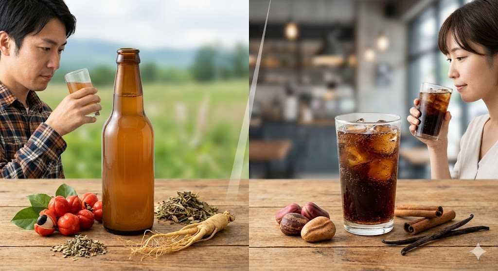 コーラが「爽快感」や「喉越し」を重視したキレのある味わいであるのに対し、北海道のガラナは「スタミナ源」としての側面を残した、少し重厚で複雑な味わいが特徴です。
